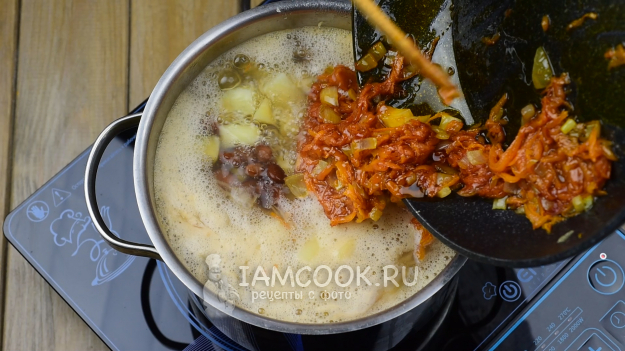 Добавим в будущие щи пассерованные овощи.