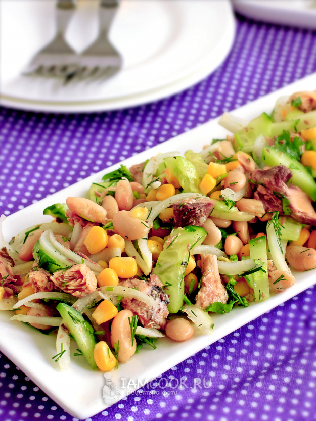 Салат с тунцом, фасолью и кукурузой готов. Приятного!