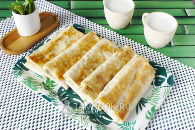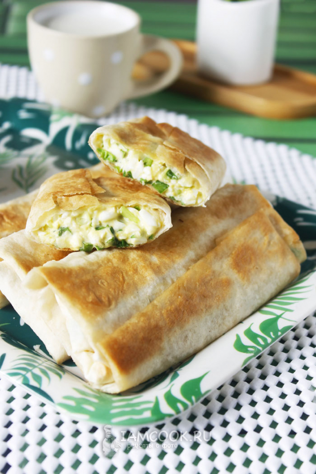 Наши закусочные пирожки из лаваша с яйцом и зелёным луком на сковороде готовы. Приятного аппетита!