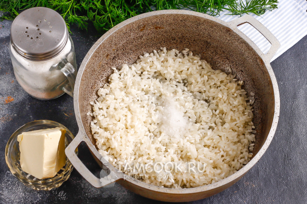 Постепенно подливайте кипяток - не бойтесь, крупа будет впитывать жидкость. И помешивайте, пока рис не станет мягким, готовым.