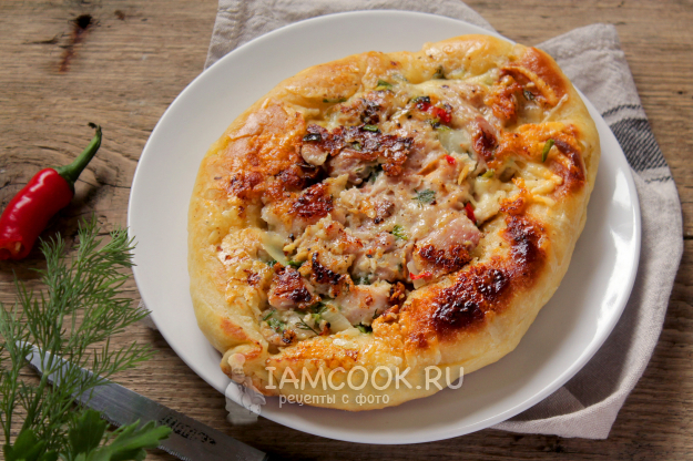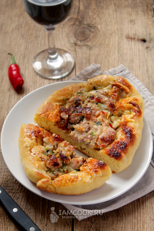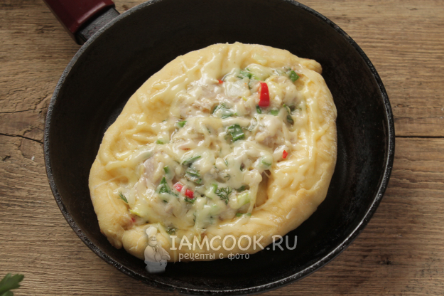 Подавайте хачапури с мясом прямо со сковороды к столу.