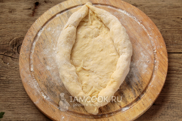 Если проколоть готовые хачапури - мякиш готов, сухой насквозь, начинка пропарена, а сыр расплавлен. Верхушка остается бледной.