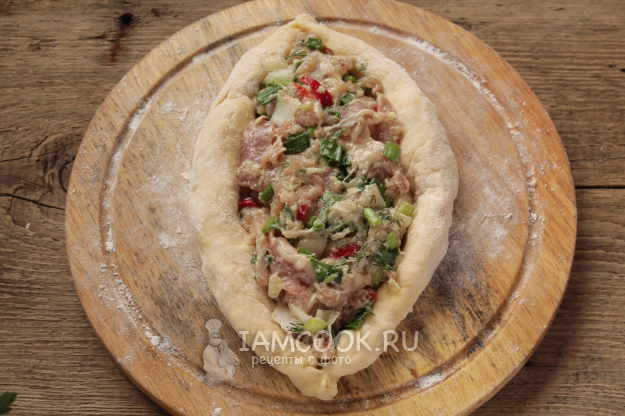 Внутри заготовки равномерно распределите мясную начинку.