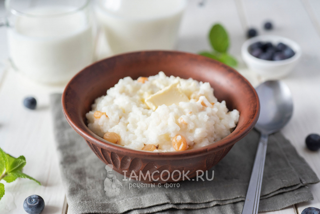 Добавим соль и сахар, зальем молоко и воду, также равномерно распределяя между горшочками. Закроем заполненные горшочки крышками и поставим в холодную духовку. Включим разогрев и дождемся, когда духовка нагреется до 200 градусов. Эту температуру оставим на 20 минут, затем температуру убавим до 180 градусов и будем готовить рисовую кашу с изюмом на молоке в духовке еще 40 минут. Проверяйте на готовность самостоятельно, так как время приготовления может колебаться из-за разных сортов рисовой крупы.