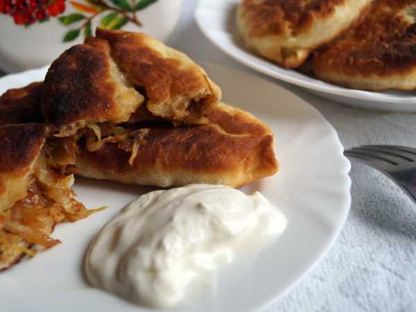 Переворачиваем и жарим слоёные пирожки с капустой на сковороде еще 3-4 минуты. Так жарим все оставшиеся заготовки.