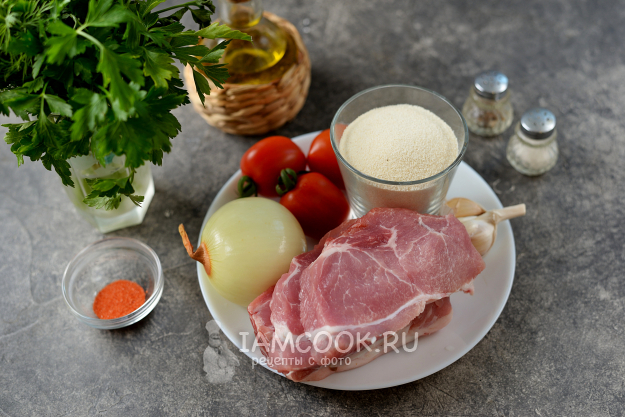 Возьмите все продукты для манной каши с мясом по списку. Овощи и мясо помойте под проточной водой, обсушите.