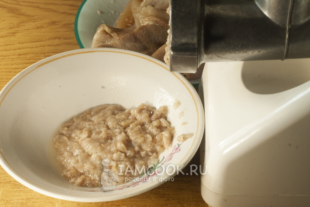 Извлекаем вареные шкуры и пропускаем через мясорубку с мелкими отверстиями.