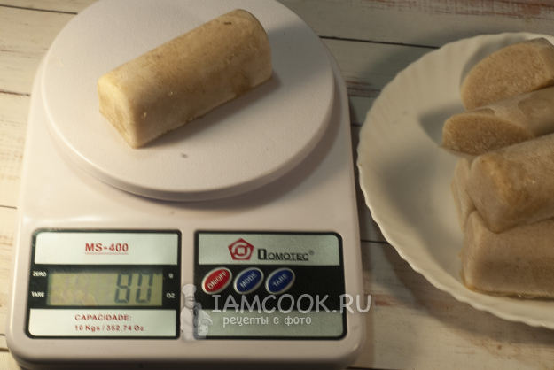 На следующий день извлекаем швартенблок из формы. Брусочки получились почти порционными, вес одного — 75-80 г.