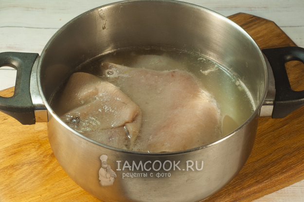 Сложим в кастрюлю, зальем водой так, чтобы шкуры покрыть сантиметра на 2-3. Добавляем соль из расчета 1 г соли на 100 г шкурок.