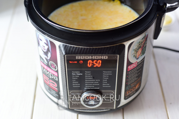 На панели управления выберем программу "Рис/крупы" и установим время в 50 минут, нажмем "Старт".