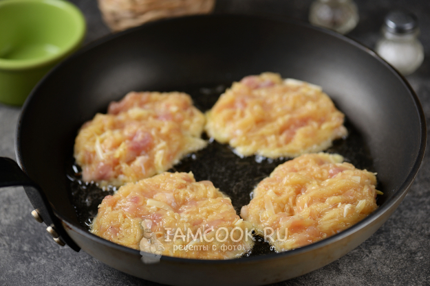 Разогрейте в сковороде рафинированное растительное масло, выкладывайте фарш по полной столовой ложке с горкой и жарьте на тихом(!!) огне минут по 5 с каждой стороны.