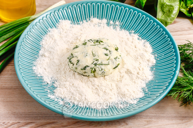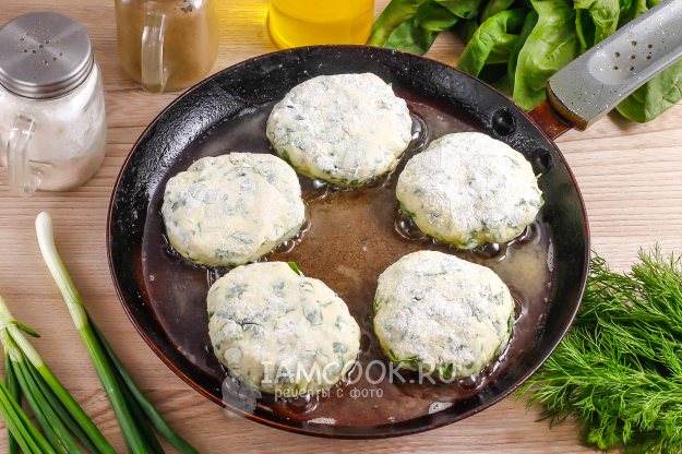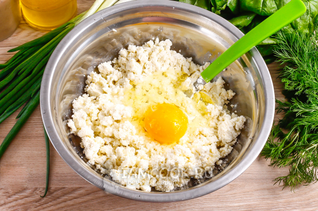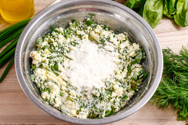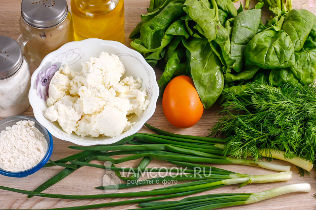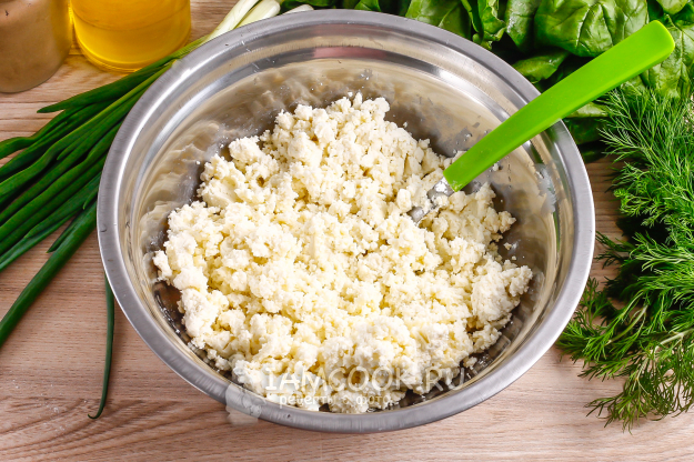 Подготовьте необходимые ингредиенты для румяных сырников со шпинатом.