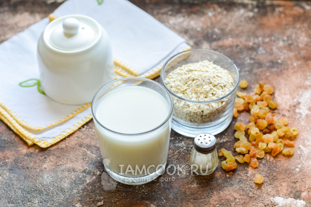 Подготовить все продукты для овсяной каши с изюмом на молоке. Овсянку можно использовать длительной варки, у меня были овсяные хлопья.