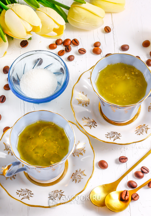 Горячий кофе разлейте в порционные чашки. По желанию его можно разделить на две порции или не делить, оставляя всю порцию себе. Помните, что при гипертонии кофе противопоказано, а также тем, кто подвержен сердечно-сосудистым заболеваниям.