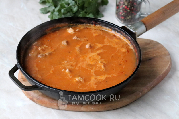 На стол мясную подливу из говядины с томатной пастой подавайте в тёплом виде с любым гарниром.