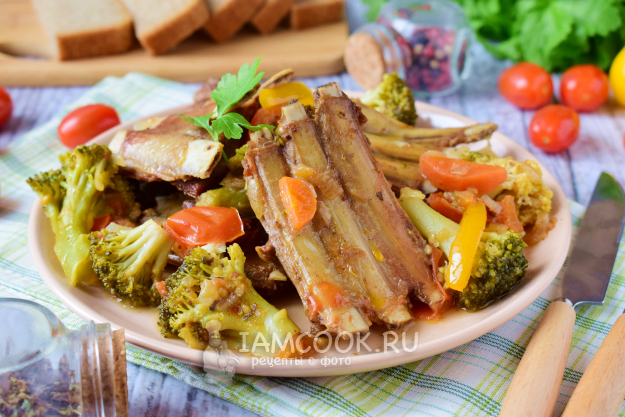 Выложите бараньи ребрышки с овощами на тарелку и подавайте к столу!