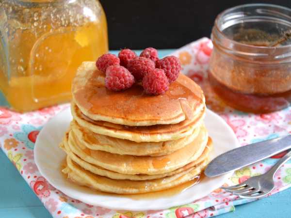 Панкейки из кукурузной муки на молоке готовы. Сложить их горкой, полить мёдом, сиропом или сгущёнкой. Подать к столу с молоком, чаем или кофе.