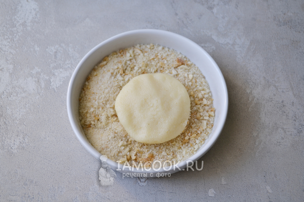 Обваляйте котлетки в панировочных сухарях с обеих сторон.