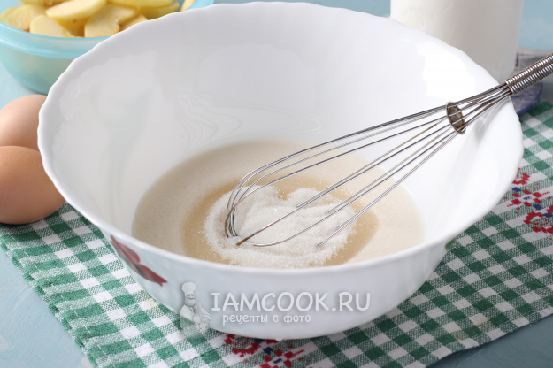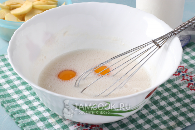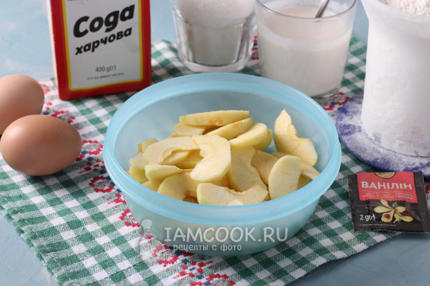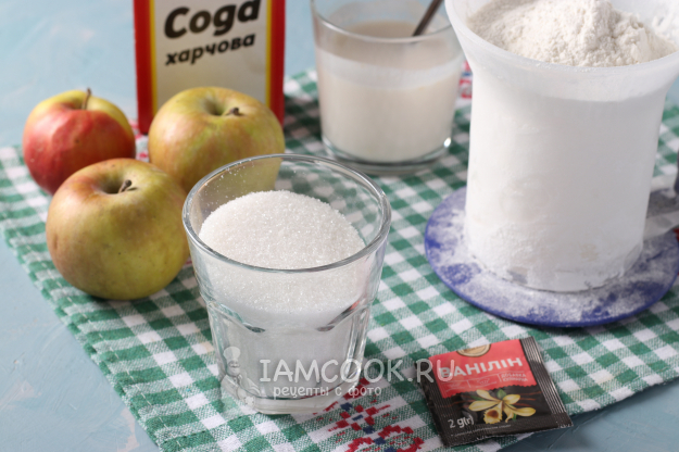 Для приготовления шарлотки на кислом молоке с яблоками подготовить необходимые ингредиенты из списка выше.