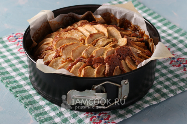 Духовку заранее разогреть до 180 градусов и выпекать шарлотку на кислом молоке с яблоками 40 минут.