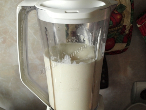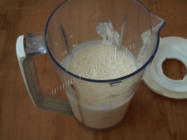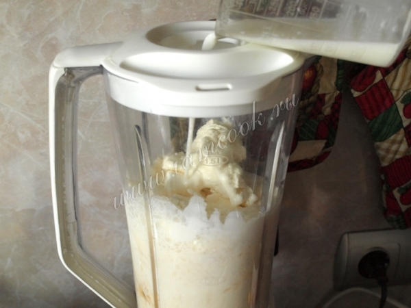 На дно чаши налить немного молока,включить блендер и начать взбивать постепенно подливая молоко.