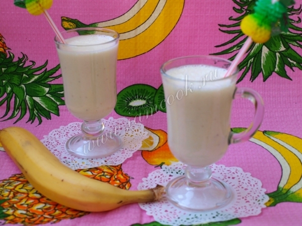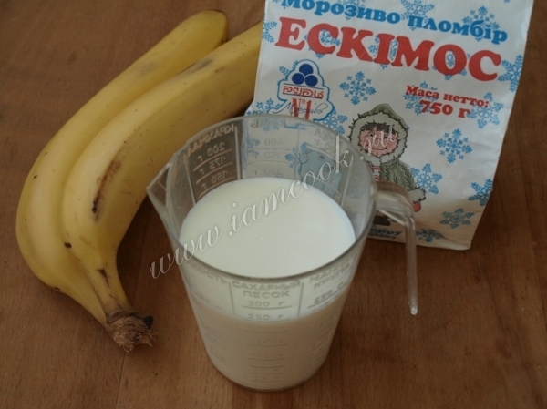 Я использовала 2 крупных банана,молоко и мороженое пломбир.