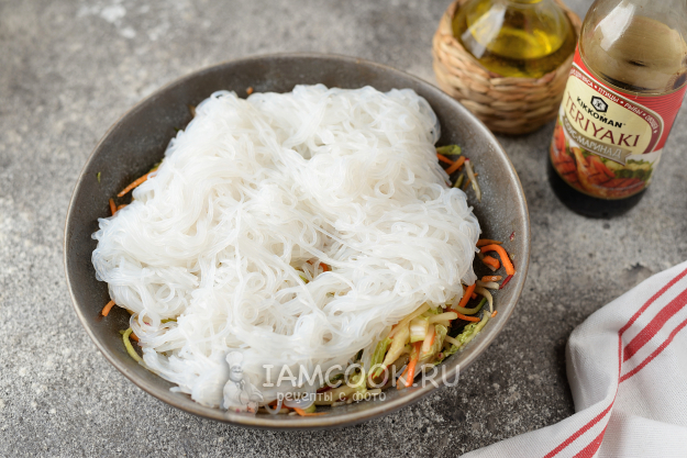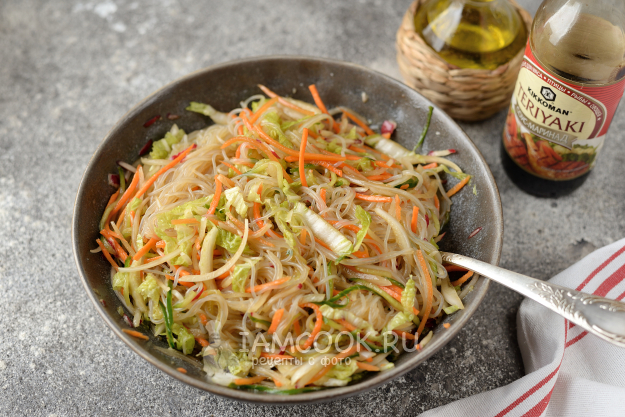 Фунчоза с овощами с соусом терияки готова к подаче на стол. Необычно, вкусно и полезно.