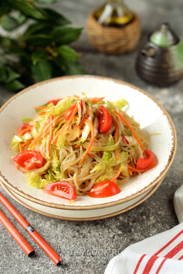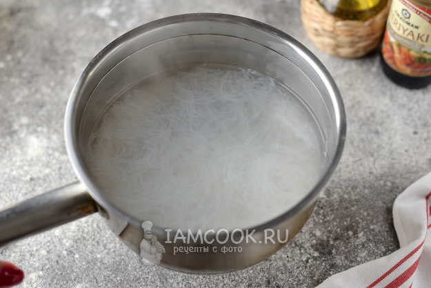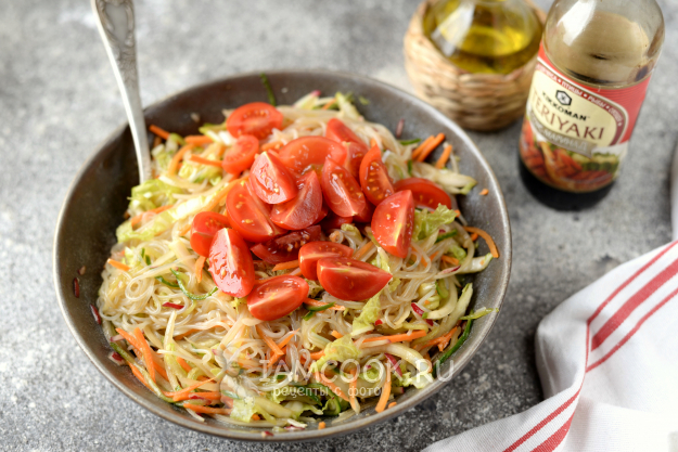 Дайте лапше остыть, переложите ее к замаринованным овощам.