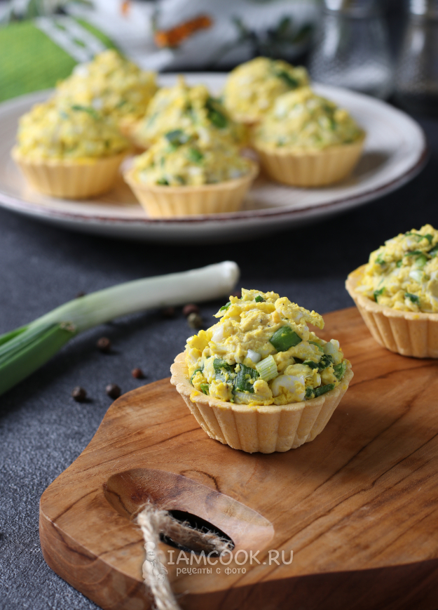 Предлагаю вам простые закусочные тарталетки с яйцом и луком (зеленым), которые готовятся очень быстро. В составе тарталеток всего два основных ингредиента, но получается всё вкусно и гармонично. Такой рецепт тарталеток можно считать основой и по желанию добавить в них сыр, колбасу или рыбные консервы. Любой вариант подойдёт для праздничного застолья. Тарталетки можно использовать песочные или вафельные, какие вам нравятся больше.
