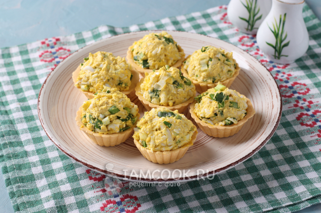 Готовые тарталетки с яйцом и луком можно сразу подавать к столу.