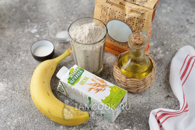 Возьмите необходимые продукты для приготовления постных овсяных блинчиков из овсяной и рисовой муки на овсяном молоке.