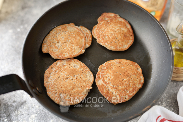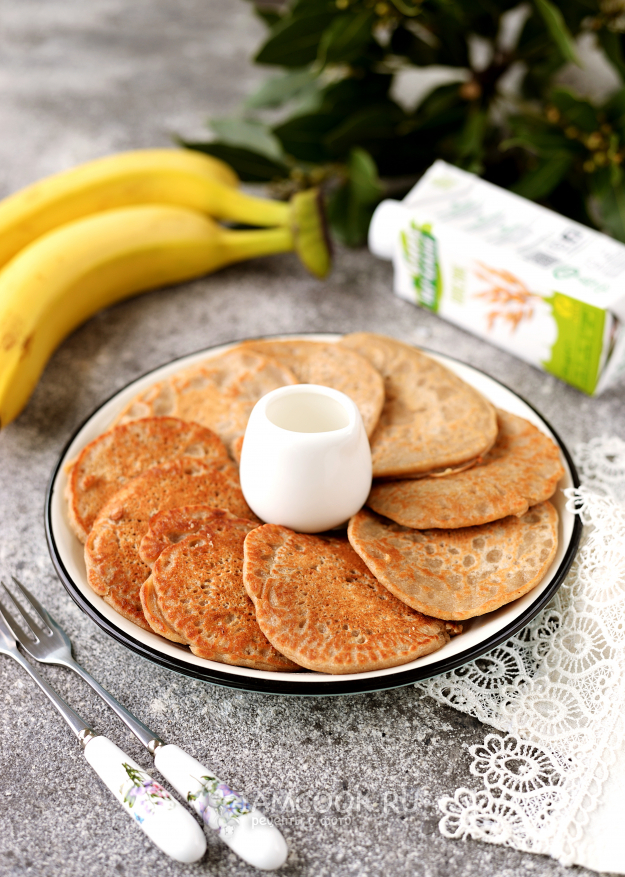 Простые в приготовлении, достаточно вкусные постные овсяные блинчики подавайте с кленовым сиропом или сиропом агавы.
