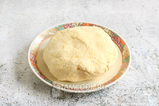 Затем добавьте сметану и влейте ледяную воду. Тесто соберите в комок и долго его не месите, достаточно чтобы все составляющие объединились.