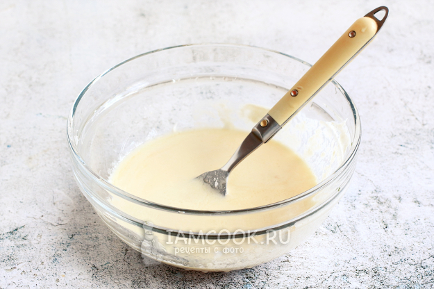 Подготовьте заливку для открытого пирога. Соедините сметану, яйцо, добавьте щепотку соли и хорошенько взбейте вилкой до однородности. Если сметана очень густая, то можно разбавить ее молоком. Отдельно натрите сыр.