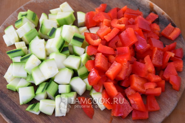 Перец и цукини нарезать небольшими кубиками.