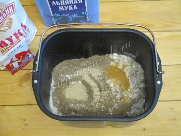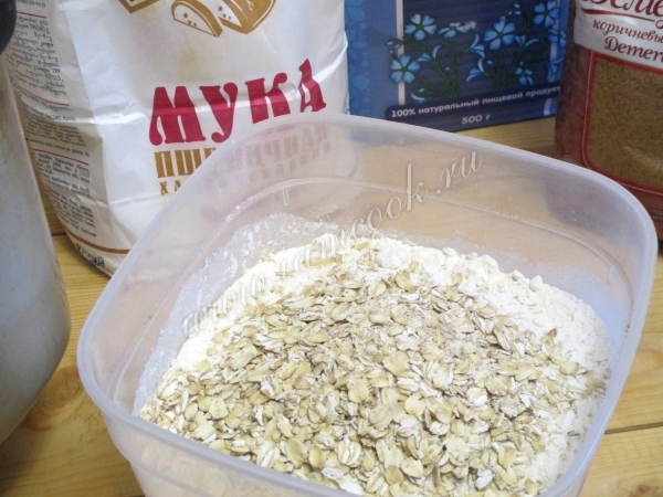 Добавьте указанное количество пшеничной муки, соли и хлопьев.