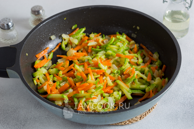 Обжарьте овощи на масле до готовности. Обжаривайте на среднем огне, периодически помешивая. В конце можно слегка присолить.