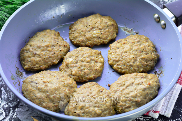 Разогрейте растительное масло на сковороде, ложкой выкладывайте оладьи, начните жарить на среднем огне.