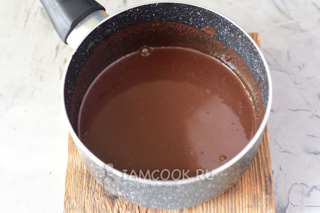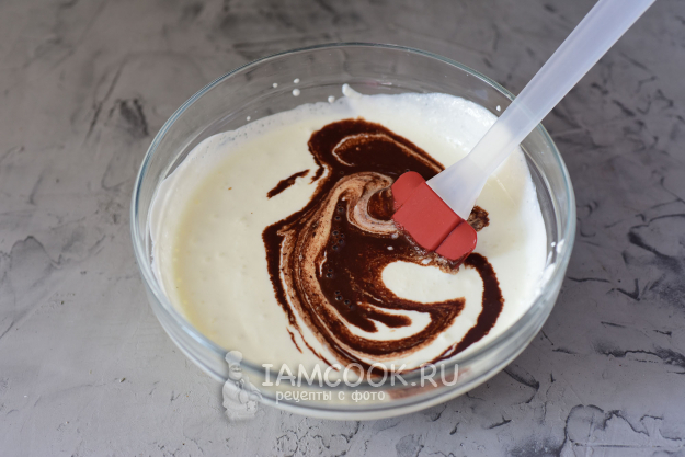 Горячий раствор с агар-агаром зальем в миску к шоколадно-творожной массе и быстро все перемешаем.