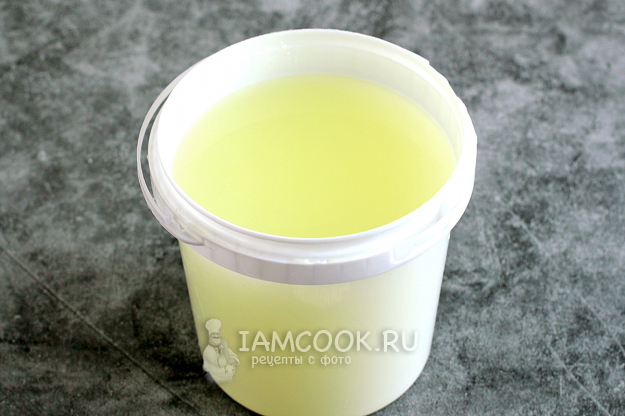 Вот такая прозрачная, как слеза, получается сыворотка. Это еще не вся, остаток я вылила в чашку, вышло примерно 1200мл. Ее можно пить вместо воды или готовить на ней выпечку, она очень полезная.