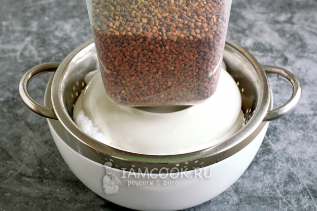 Когда смесь немного остынет, вылейте содержимое кастрюли в дуршлаг или сито, предварительно проложив дно марлей в два слоя. А под дуршлаг поставьте глубокую кастрюлю - туда будет стекать сыворотка. На этом этапе полученную смесь можно подсолить и добавить рубленую зелень, кто любит. Добавьте соль и слегка перемешайте. Одна чайная ложка дает слабую, едва заметную соленость.