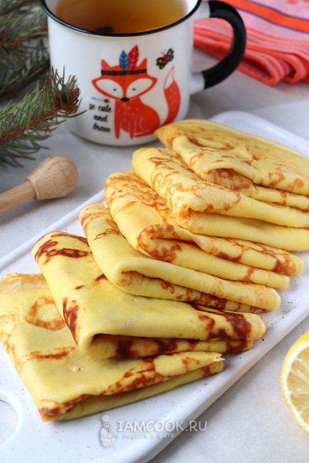 На стол творожные блины на кефире подавайте в тёплом виде, дополнив сметаной или любой сладкой начинкой.