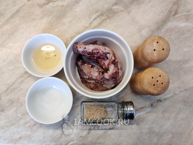 Для приготовления сушеного кальмара в домашних условиях подготовьте все необходимые продукты. У меня неочищенный кальмар, но можно взять очищенного или даже уже готовые кольца. Чеснок лучше подойдёт гранулированный, он даёт более мягкий вкус.