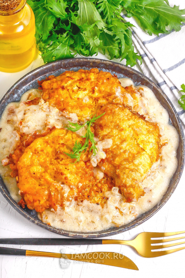 Готовые отбивные из свинины в сметанном соусе выложите на тарелку и подайте к столу горячими. Не забудьте и про соус. Особенно вкусны такие отбивные в сметане с картофельным пюре.