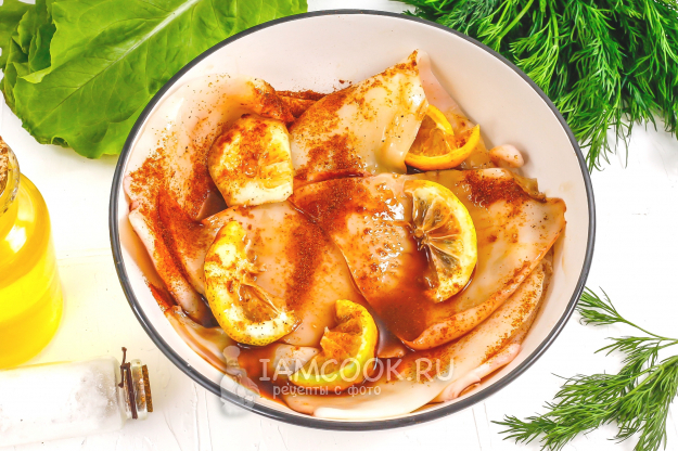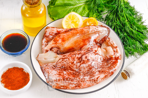 Подготовьте необходимые ингредиенты для создания аппетитных кальмаров на электрогриле.