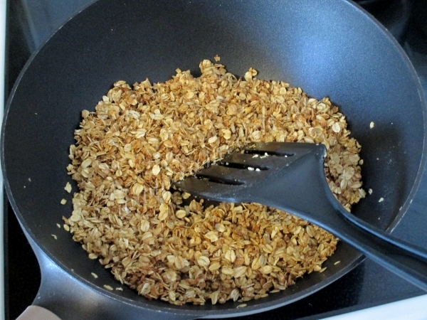 Вариант подачи: разложите по креманкам мороженое, полейте яблочным или другим сиропом и посыпьте карамелизированным геркулесом. Вкус - чудесный!