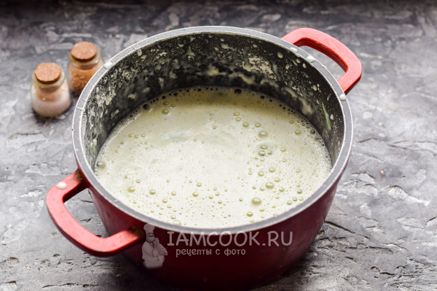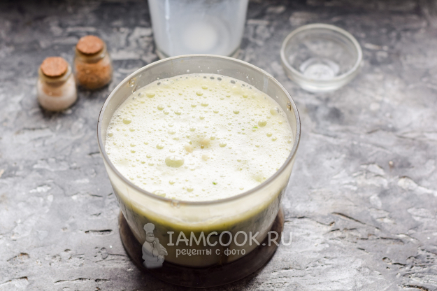 Влить молоко, добавить соль и сахар. Взбить все ингредиенты на средней скорости буквально 30 секунд.