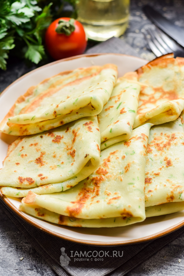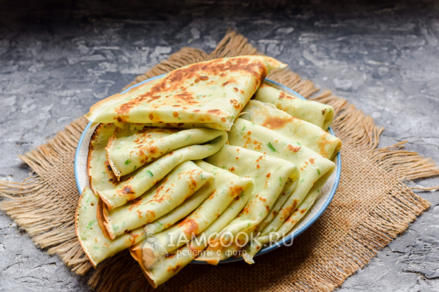 Готовые луковые блины подавать к столу.