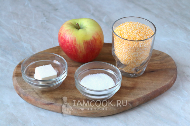Подготовим необходимые ингредиенты для приготовления кукурузной каши с яблоком (на воде).