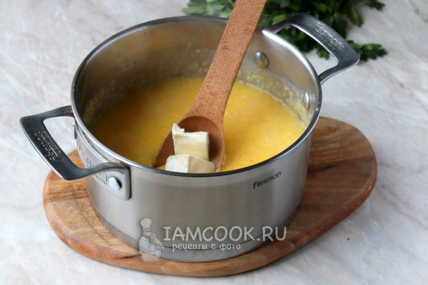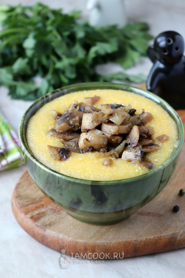 Кукурузная каша с грибами готова к дегустации. Приятного аппетита!